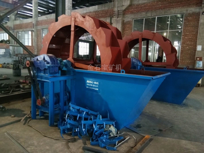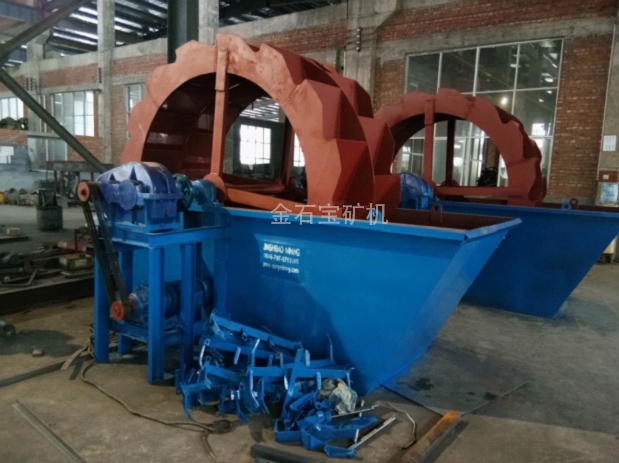 轮式洗砂机具有洗净度高,结构合理,处理量大,功耗小,洗砂过程中砂子流失少,尤其是洗砂机传动部分均与水、砂隔离,故其故障率大大低于目前常用洗砂机。