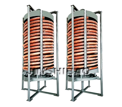 新型螺旋溜槽具有新型技术改进型带动力型,加配旋转的离心力自己振动电机的振动力,转速可调,振幅可调选矿稳定,分矿